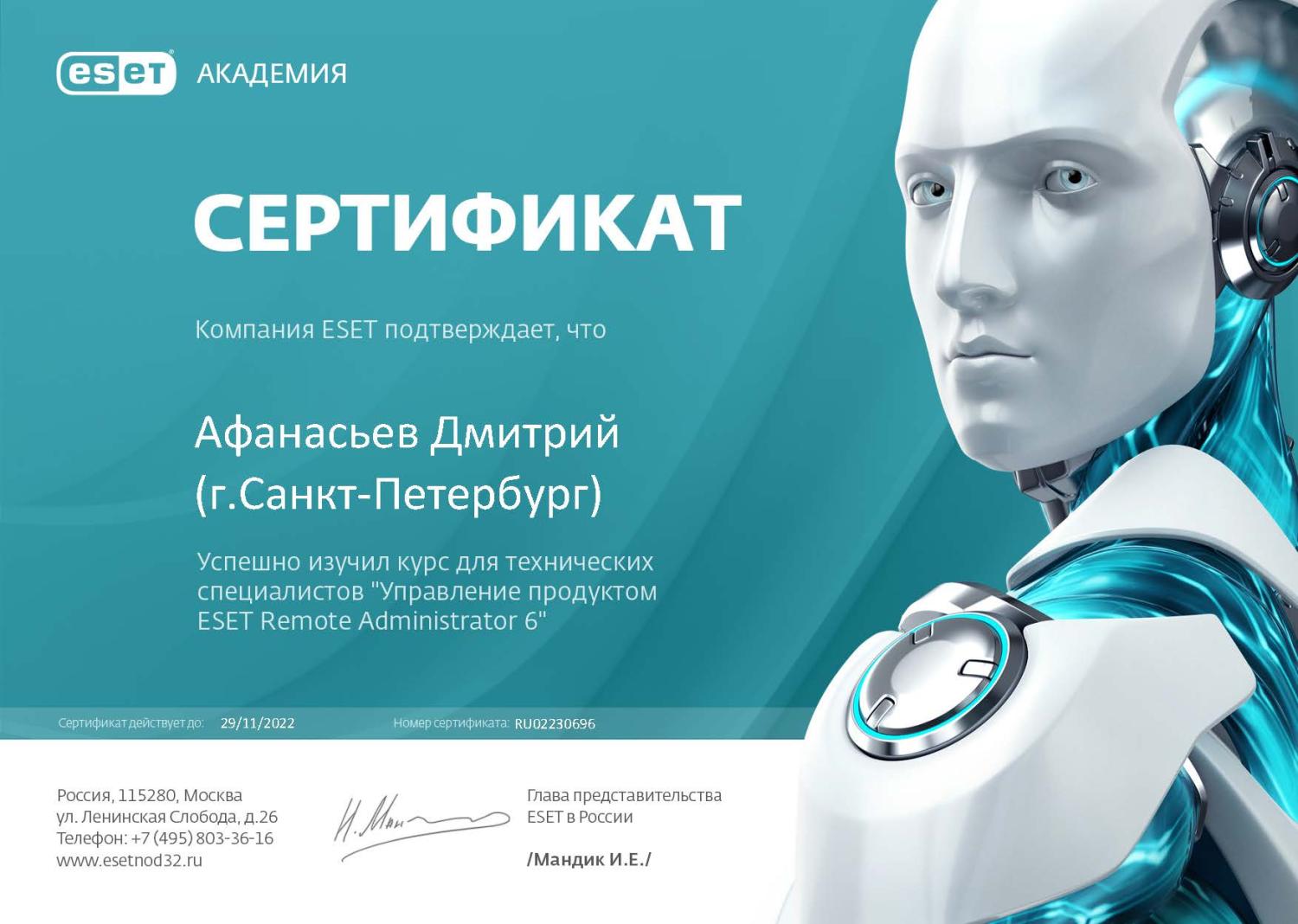 Сертифицированный специалист по управлению антивирусными решениями ESET (6-е поколение)