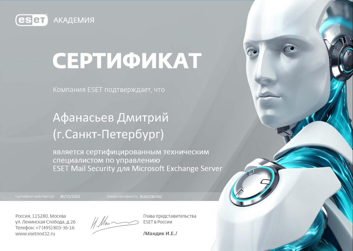Сертифицированный специалист по управлению антивирусными решениями ESET (5-е поколение)